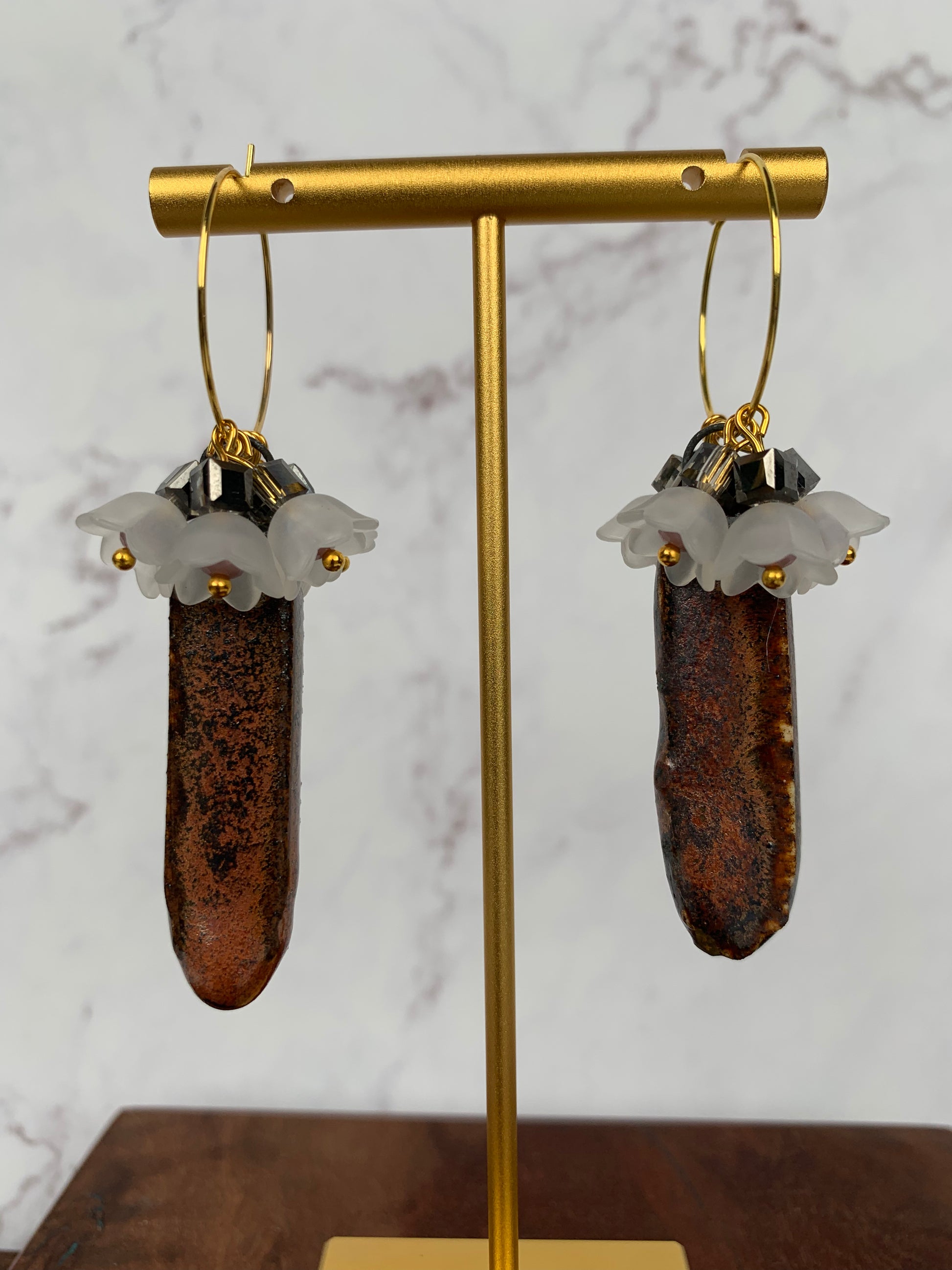 Copper porcelain lily of the valley hoops